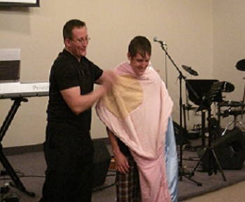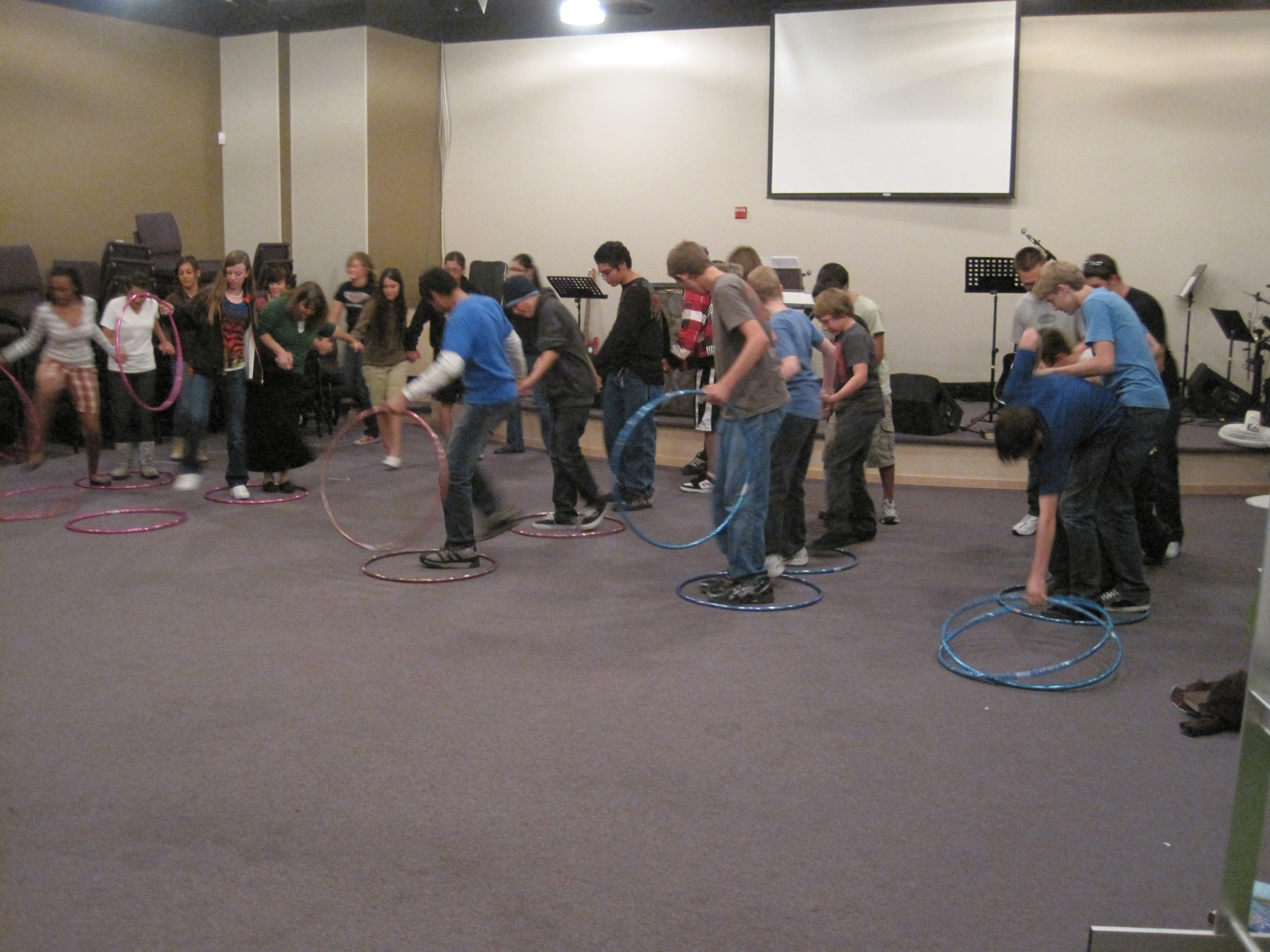 Now the games are the crazy part of the evening. We play crazy diverse games ranging from duck duck goose to untangling a group of people all attached by their hands! Every week the games get more fun and crazy. One more recent game was one derieved from the TV show, Minute to Win It. We had a stack of playing cards and had to get the cards lodged into a watermelon. We were ninjas!